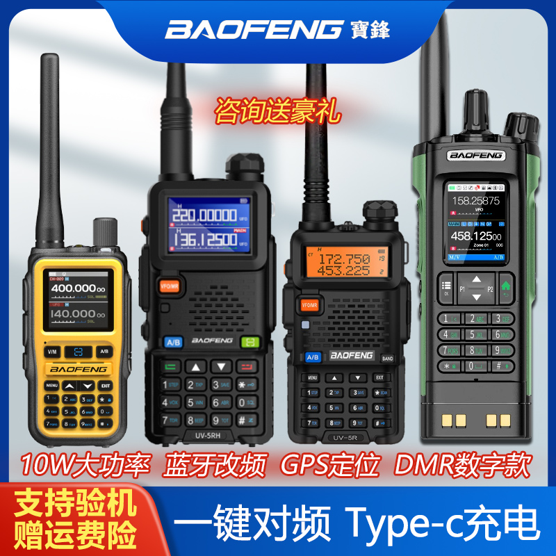 baofeng宝锋BF-UV5R对讲机民C用1-50公里宝峰大功率模拟手台调频