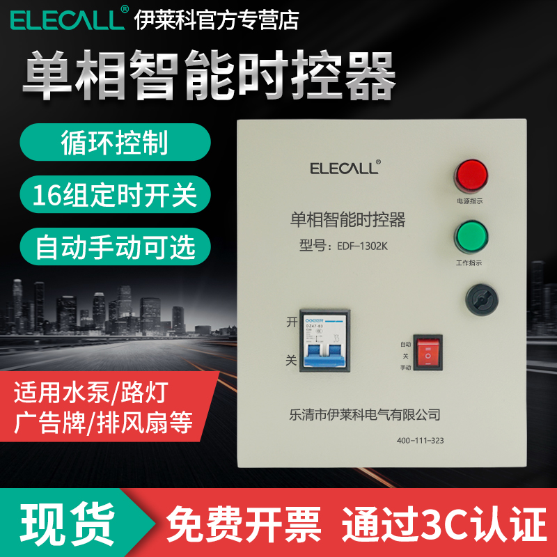 伊莱科220V单相智能时控开关控制柜排风扇水泵增氧电机时间定时器
