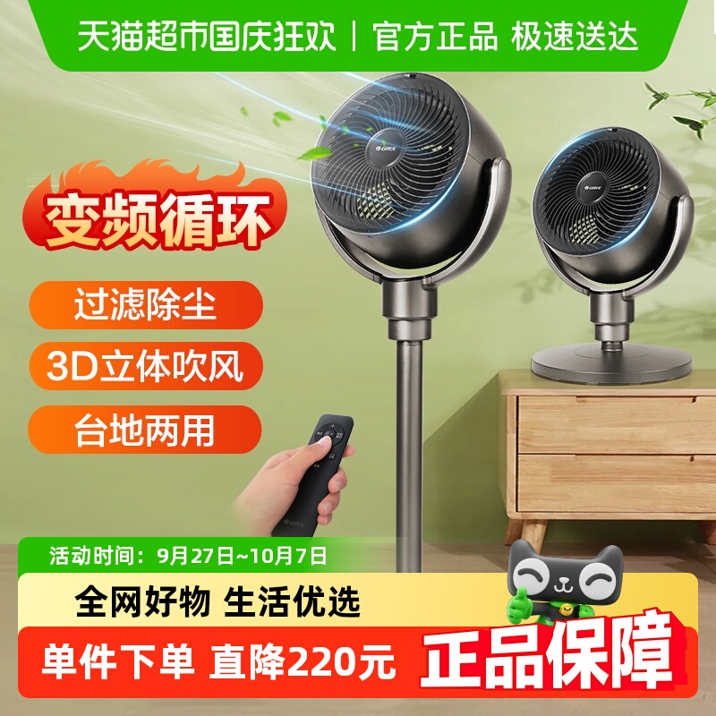 格力家用空气循环扇电风扇3d立体电扇台式涡轮静音智能遥控落地扇