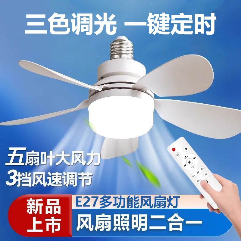2025螺口风扇灯泡e27新款家用led厨房卧室吸顶吊扇灯节能开关无线