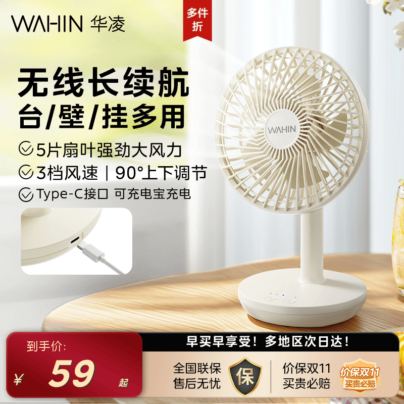 美的出品华凌小风扇电风扇usb充电家用桌面壁挂便携户外露营电扇