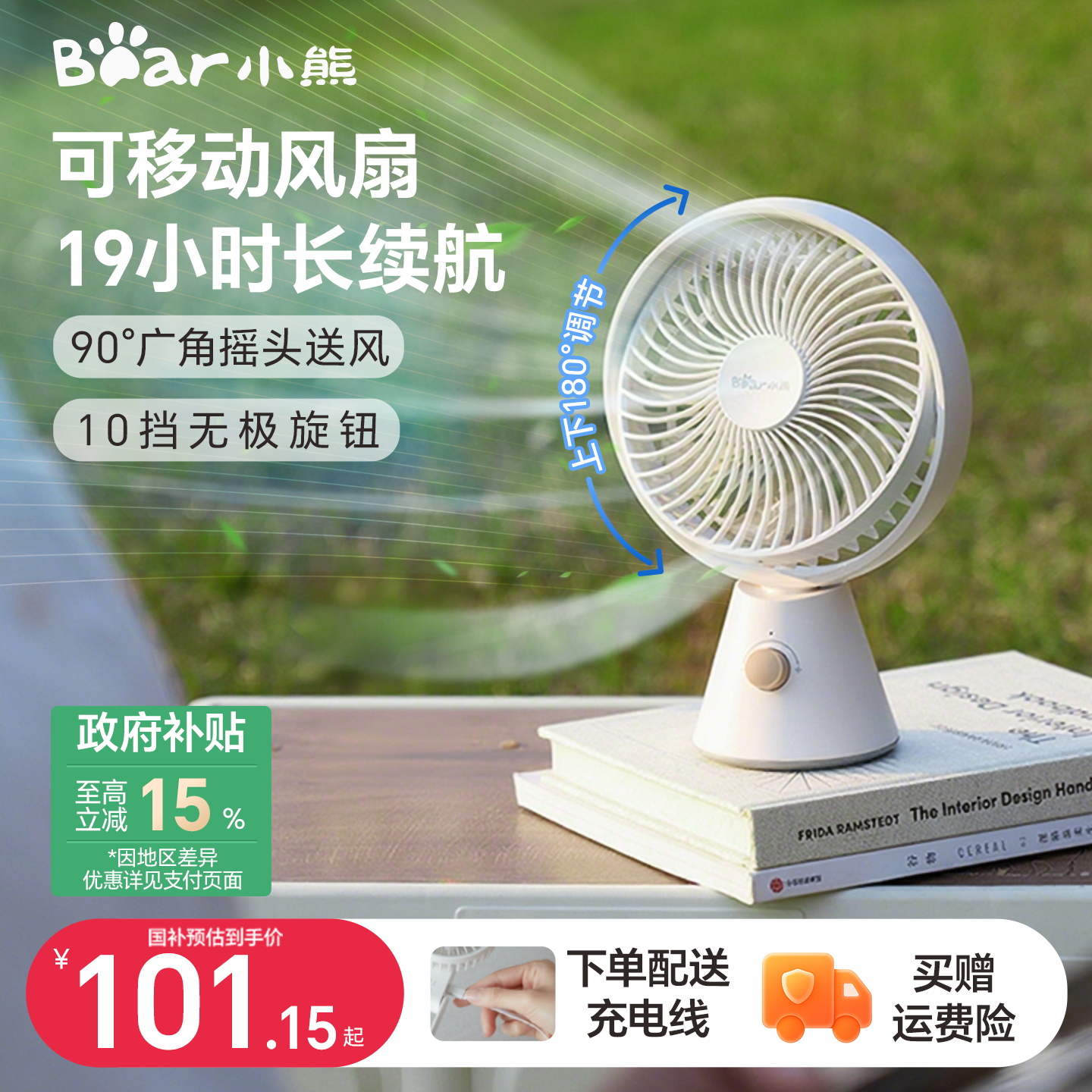 小熊桌面电风扇户外移动风扇便携USB充电小风扇无线轻音随身电扇