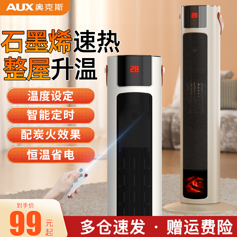 奥克斯取暖器家用电暖风机电暖器石墨烯速热风机立式小太阳烤火炉
