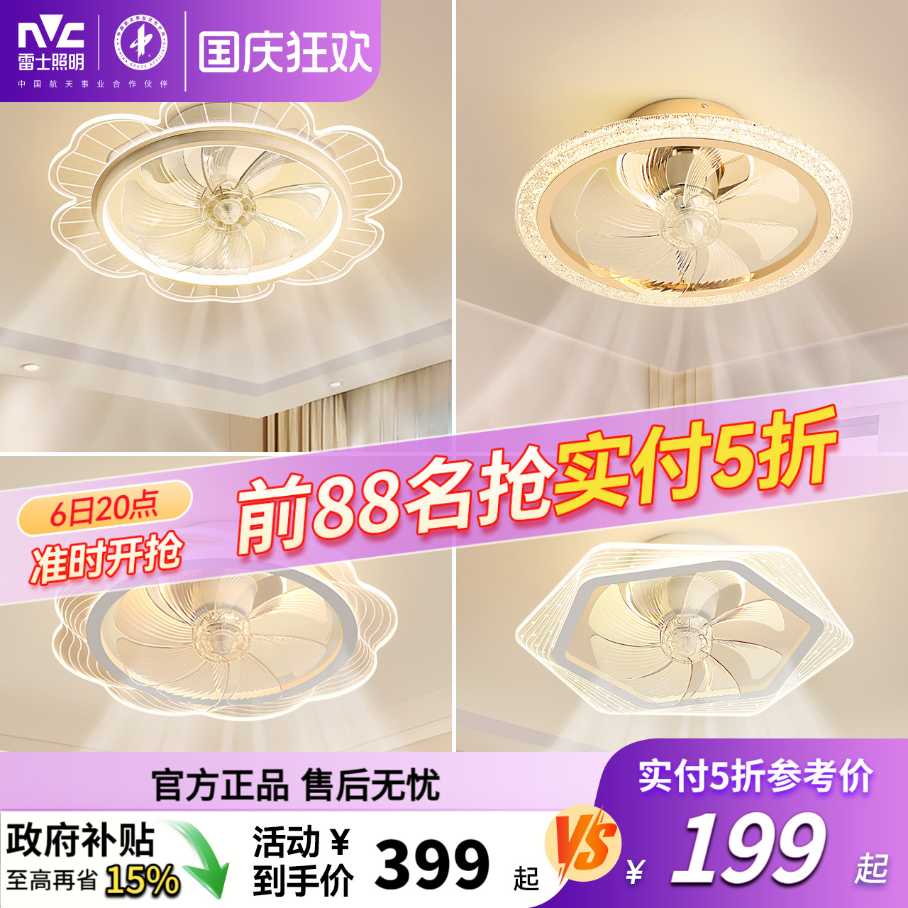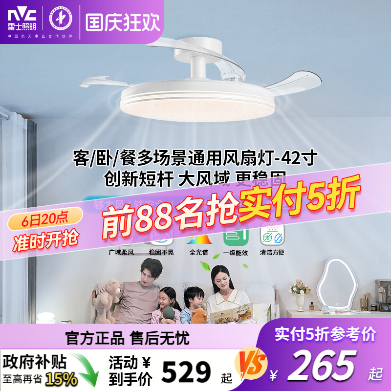 雷士照明吊灯客厅灯餐厅卧室主灯简约现代吊扇灯隐形风扇灯卧室灯