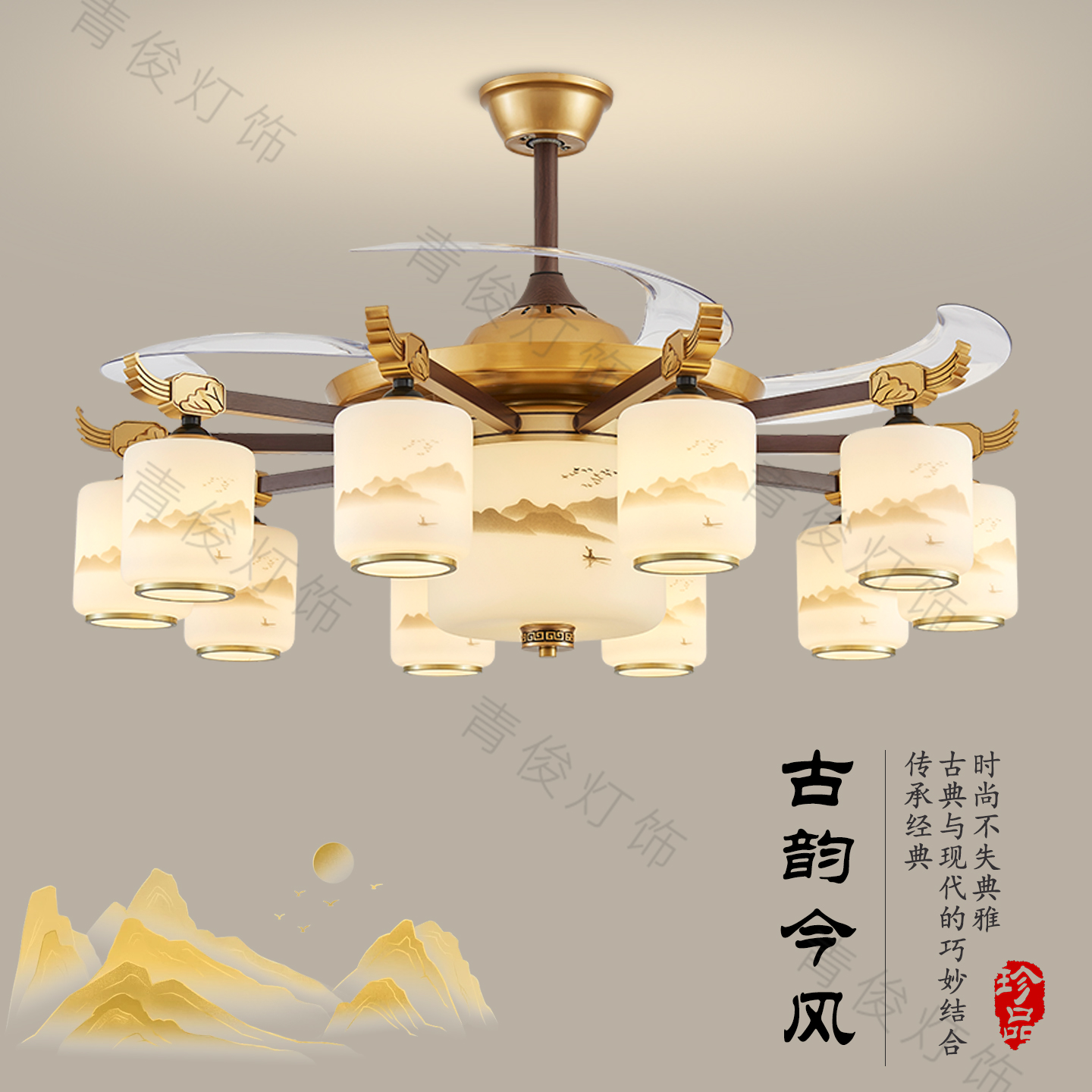新中式吊灯客厅风扇灯现代中式隐形一体吊扇灯2025新款大厅餐厅灯