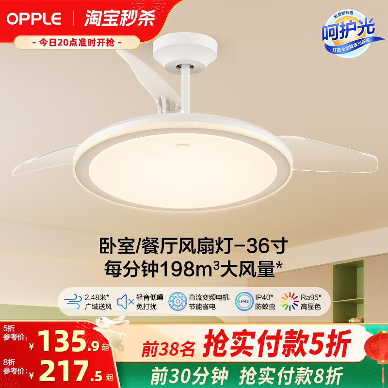 OPPLE欧普风扇灯隐形扇客厅餐厅卧室家用简约风扇吊灯现代电扇BY