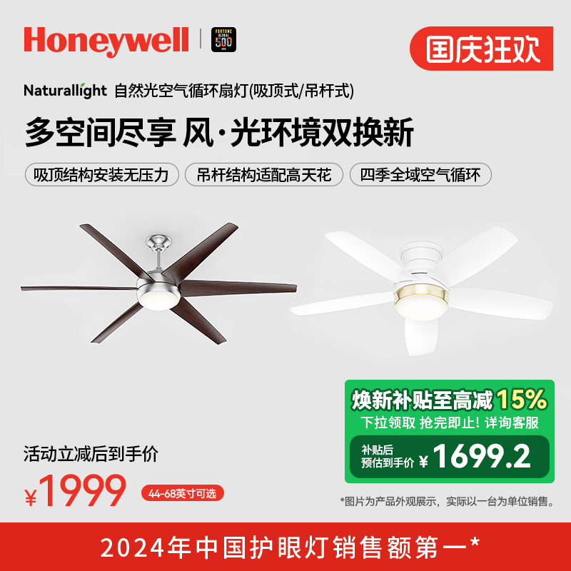 霍尼韦尔空气循环扇灯餐厅吊扇灯家用风扇吊灯简约现代风扇灯新品