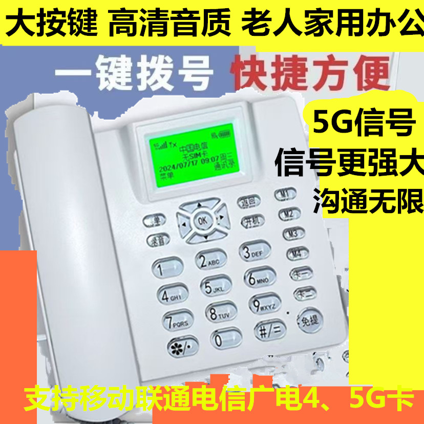 全网通无线座机插卡移动电信联通广电45G高清老人家用无绳电话机
