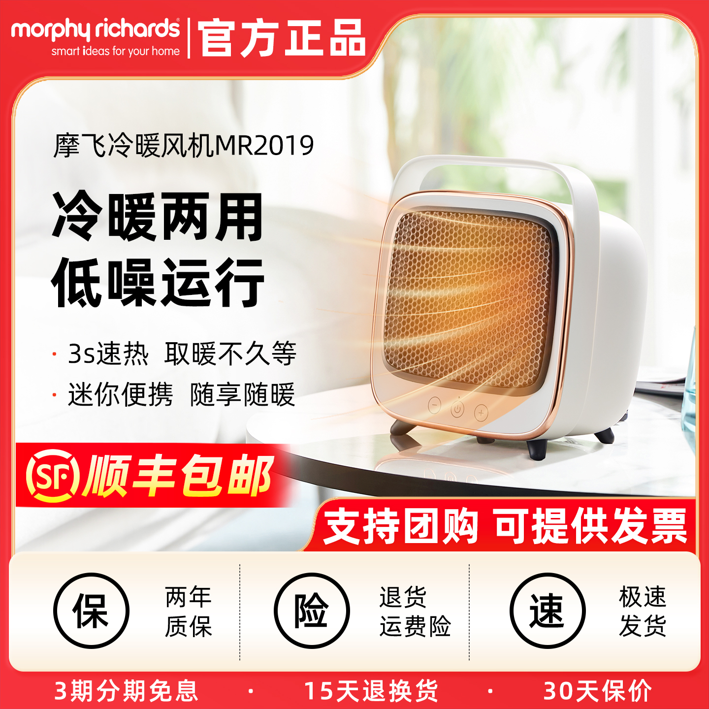 摩飞冷暖风机取暖器小太阳MR2019家用办公室宿舍小型桌面冷暖两用
