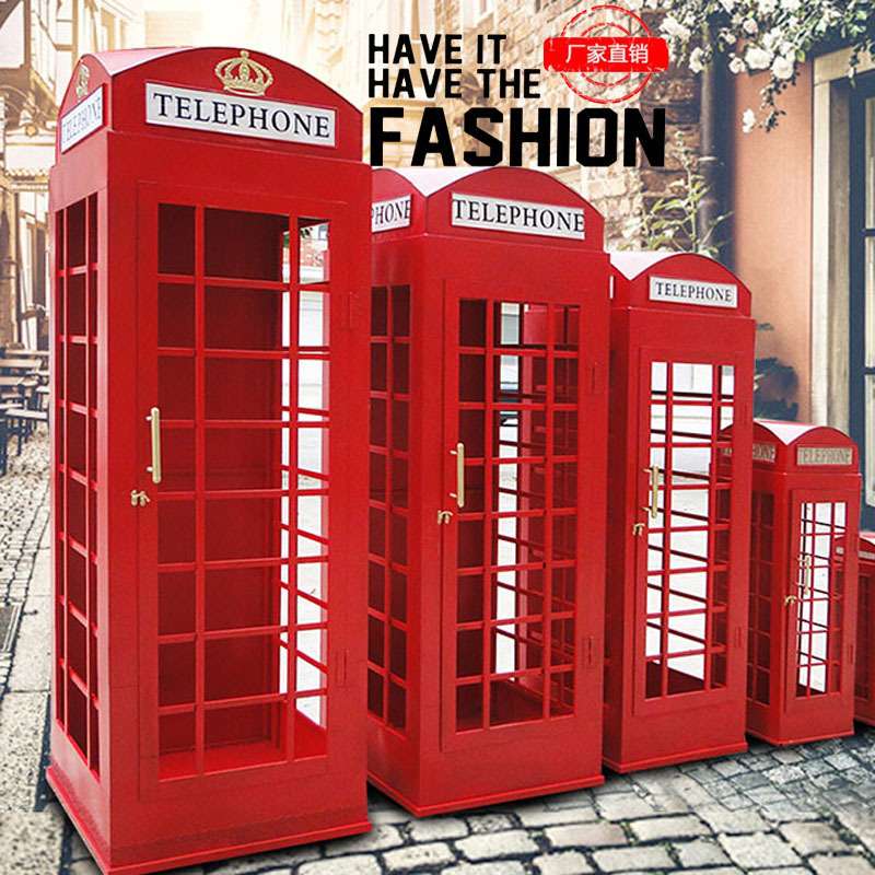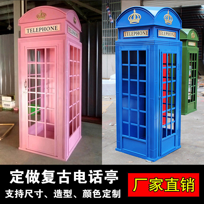 复古英国英伦电话亭铁艺模型储物柜北欧陈列道具装饰大型摆件定制