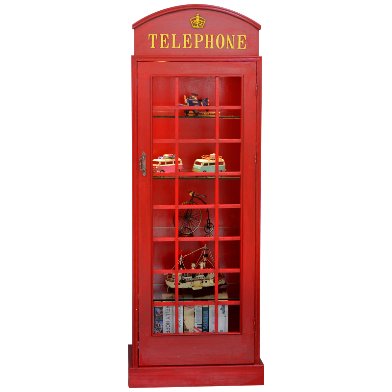 复古英式电话亭带灯储物柜客厅书柜服装店咖啡厅酒吧商场陈列摆件