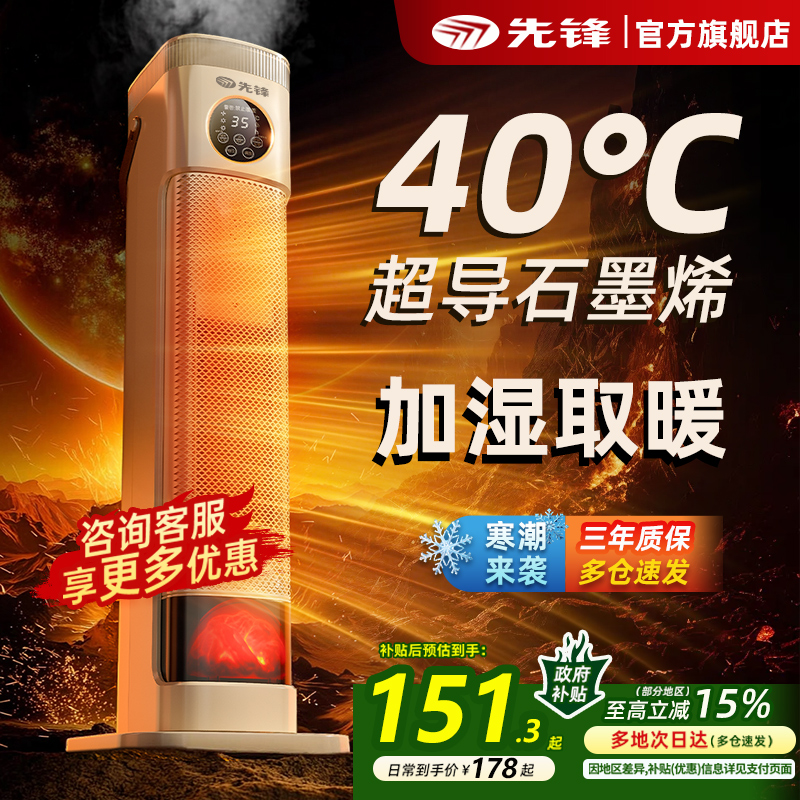 先锋石墨烯取暖器语音加湿速热暖风机立式家用小太阳烤炉2025新款