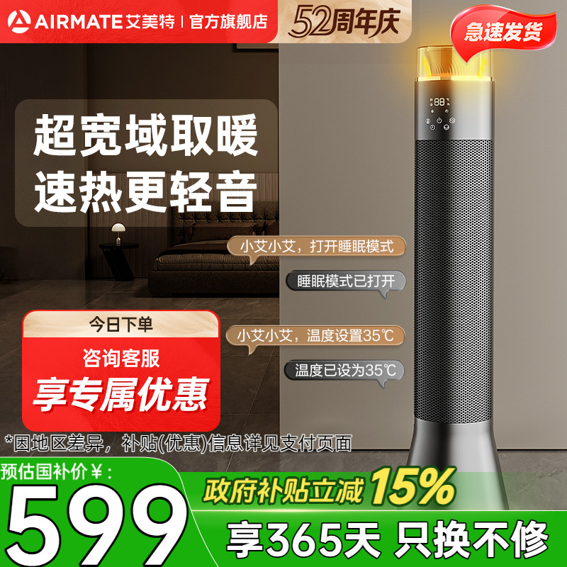 艾美特石墨烯取暖器暖风机立式家用省电暖气冬季神器小太阳烤火炉