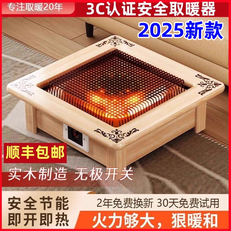 2025新取暖器烤火炉家用节能省电烤火盆实木桌下电烤炉烤脚电火桶