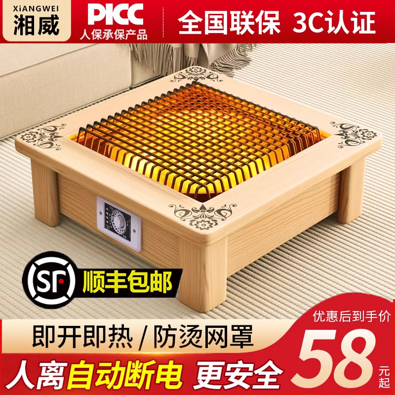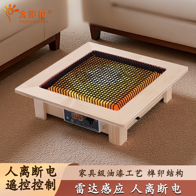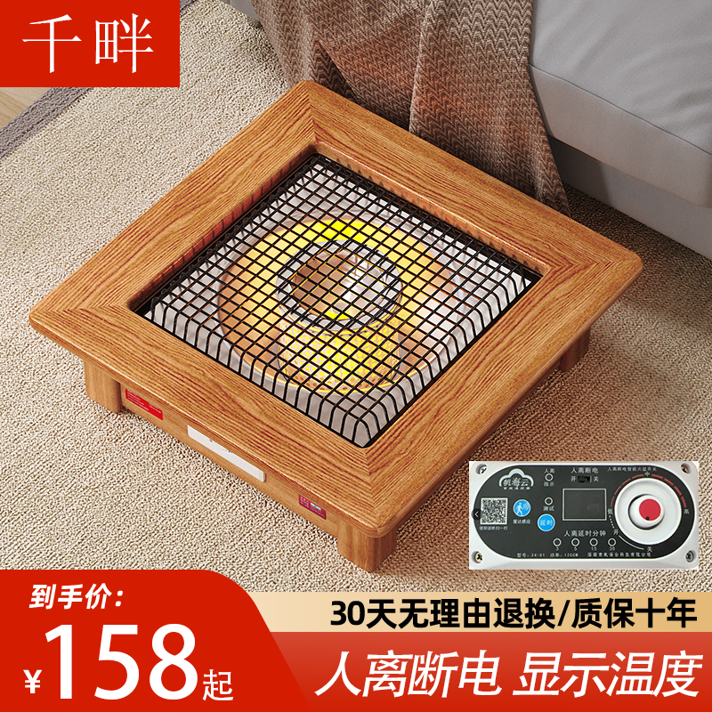 千畔实木烤火炉取暖器家用桌下烤火盆烤火器暖脚器小太阳电暖神器