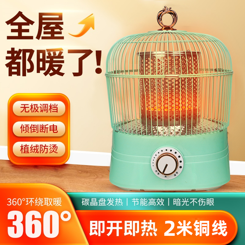 2025小型鸟笼取暖器家用小太阳烤火炉桌下电暖脚器烤火盆省电暖炉