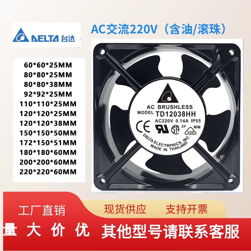 台达3 4 5 6 7 8 9 12CM/厘米静音滚珠12V/24V机柜机箱散热风扇