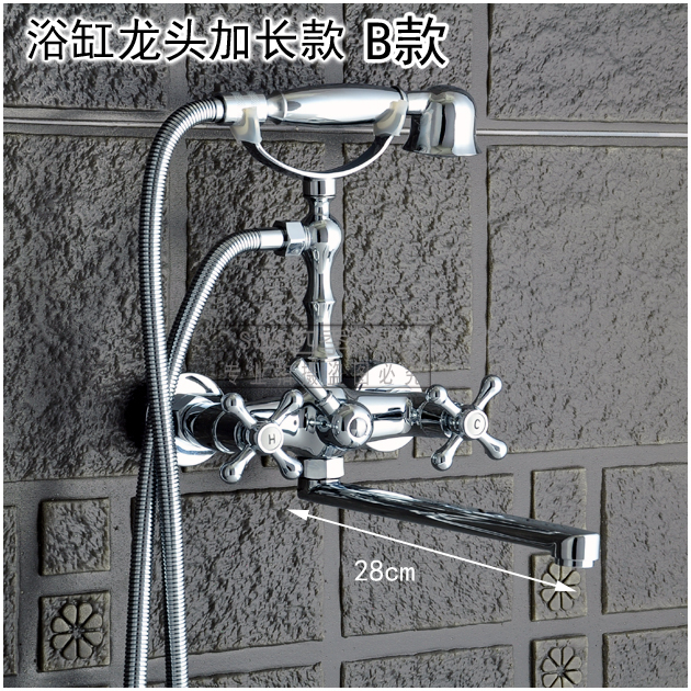 双控铜浴缸龙头加长款淋浴龙头入墙龙头浴缸边电话机手持喷头旋转