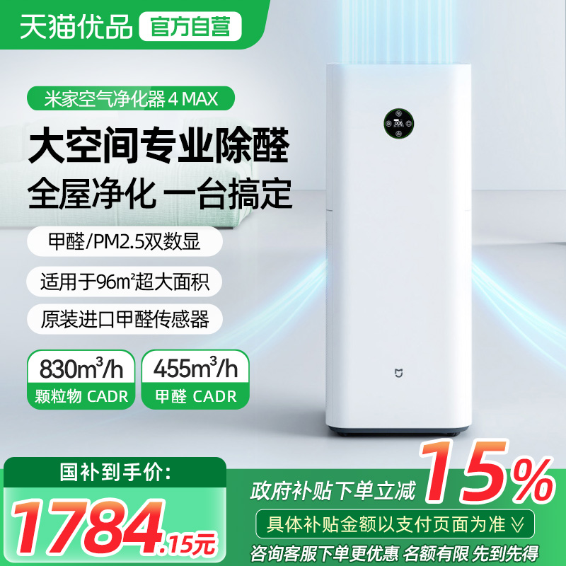 米家空气净化器4 MAX 专业级除甲醛除异味除菌家用
