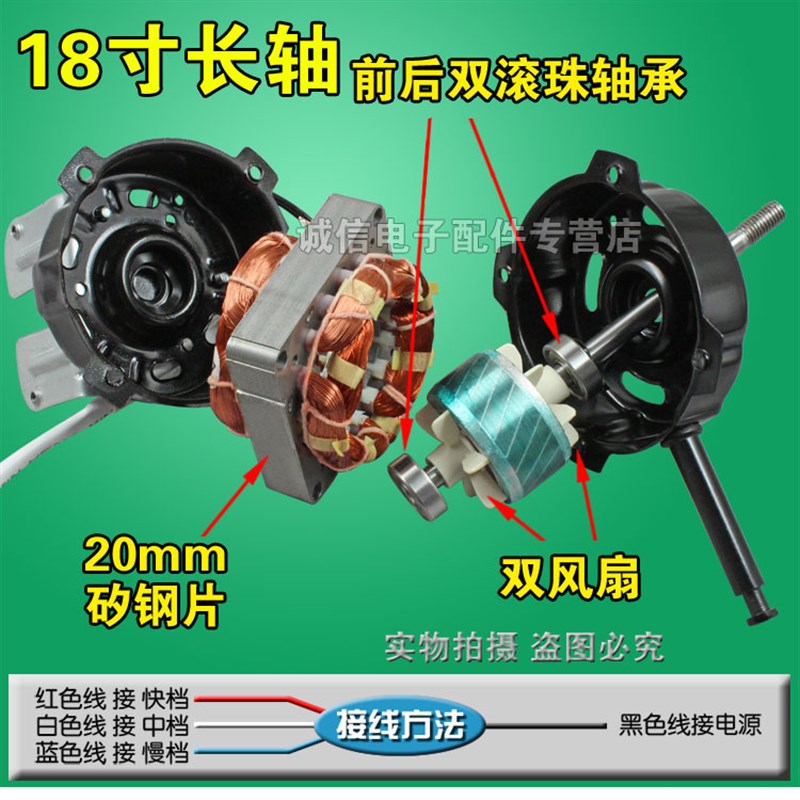包邮壁扇遥控型风扇电机双滚珠轴承18寸落地扇风扇电机轴长10.2cm