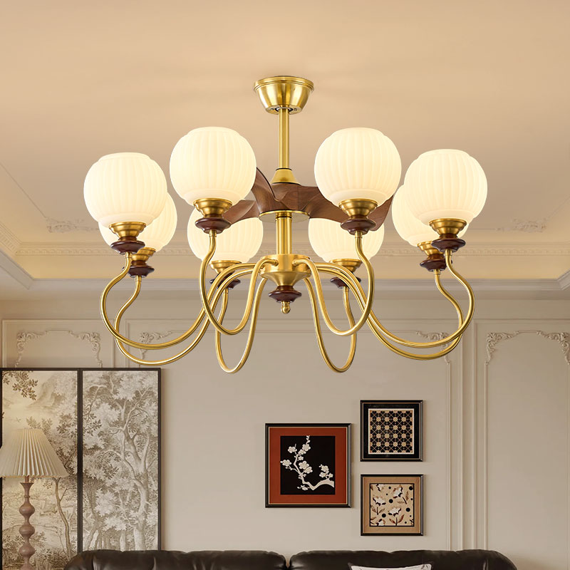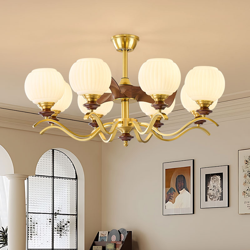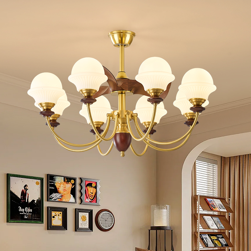简约时尚欧美式红铜42寸客餐厅卧室电风扇灯椭圆木叶复古风扇吊灯