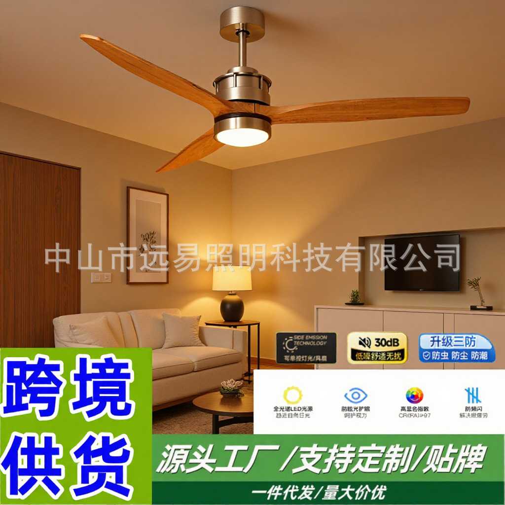北欧吊扇灯简约现代电扇灯客厅餐厅风扇吊灯家用实木美式复古吊扇