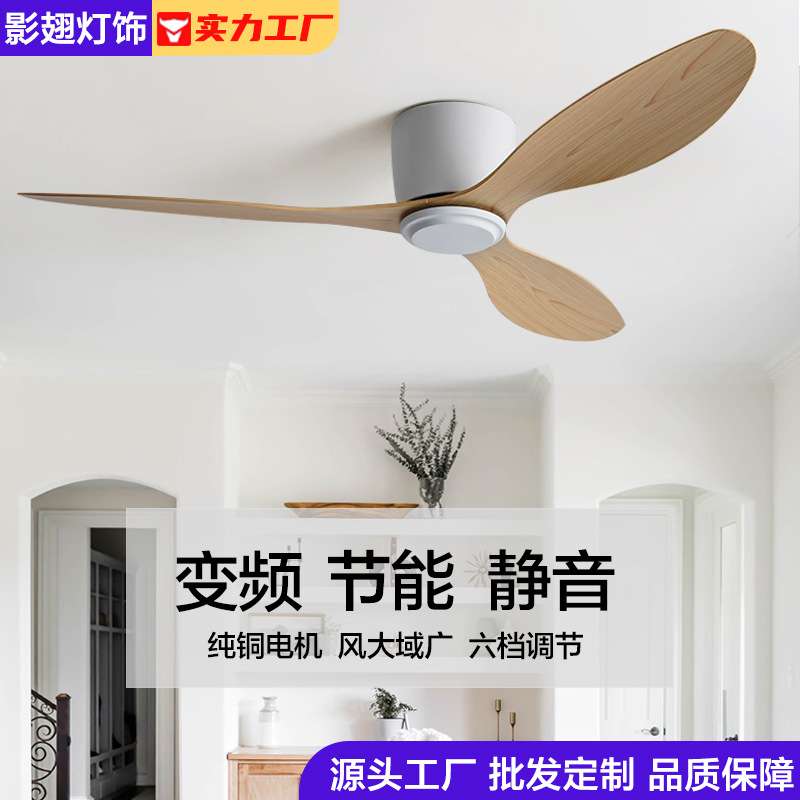 变频静音吸顶吊扇实木北欧复古吊灯餐厅客厅家用简约吊扇灯电风扇