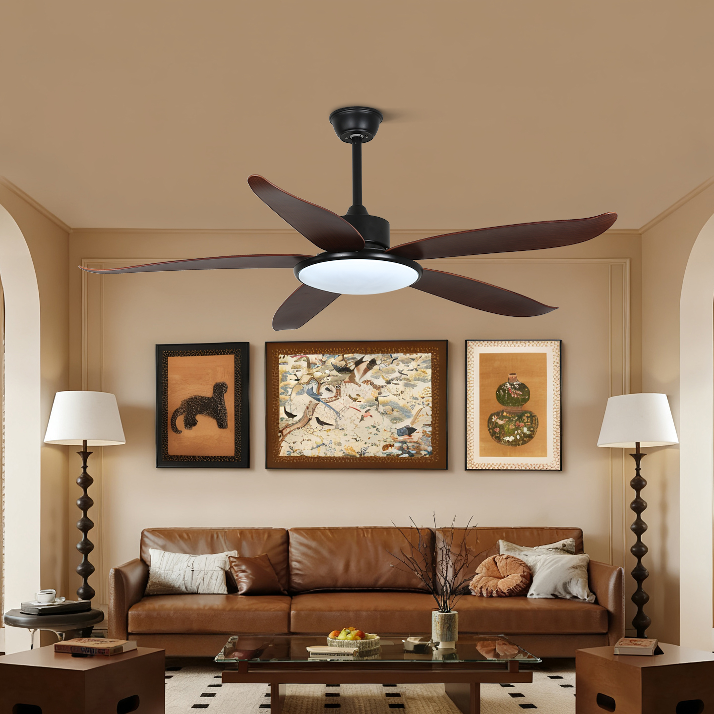 复古风扇灯2025新款大气吊扇灯客厅餐厅胡桃木色简约静音风扇吊灯